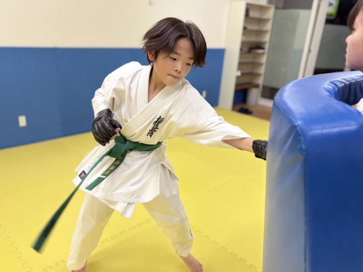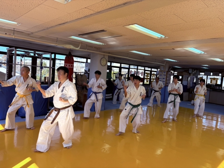 応用稽古や約束組手、連続技、身体捌き、自由組手などを行います。